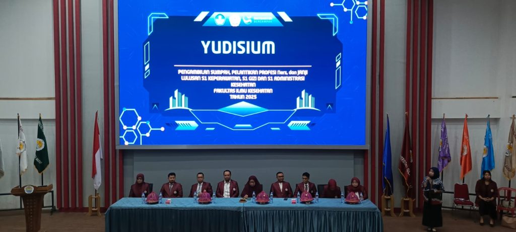Yudisium merupakan momen penting dalam rangkaian akhir studi mahasiswa sebagai tanda kelulusan secara resmi dari jenjang pendidikan tinggi. Para peserta yang hadir tampak penuh haru dan bangga, mengenakan pakaian formal dan siap menyandang gelar baru sebagai tenaga kesehatan profesional.